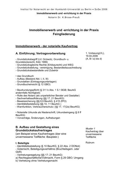 immobilienerwerb und errichtung in der praxis feingliederung