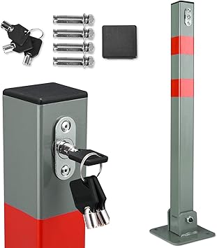 deuba 2x parkpfosten parkplatzsperre 3 schlussel sperrpfosten klappbar stahl robust standfuss stabil park poller set amazon de baumarkt