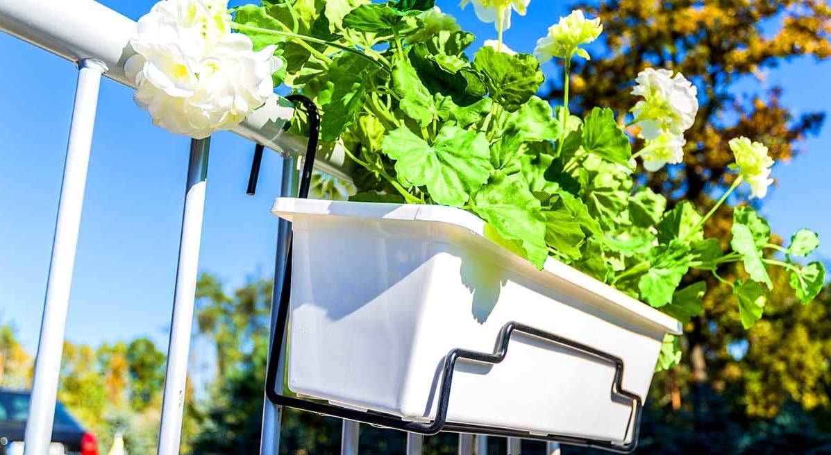 schwarz innen und aussen terrasse blumenkastenhalter mit haken balkon pflanzenhalterung aus stahl kadax blumentopfhalter fur gelander pflanzenstander blumenkasten breite 14 cm