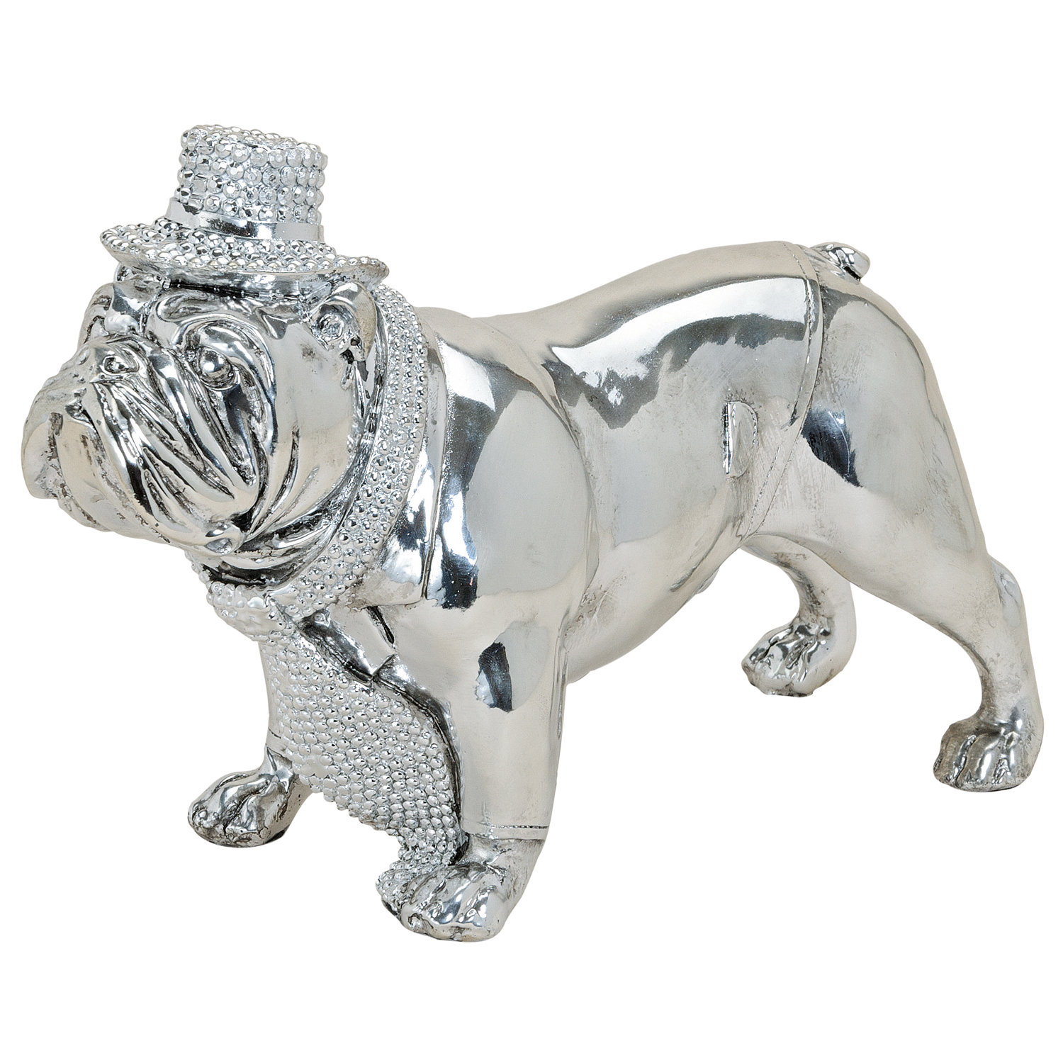 dekofigur hund mit hut und krawatte stehend silber polyresin romodo