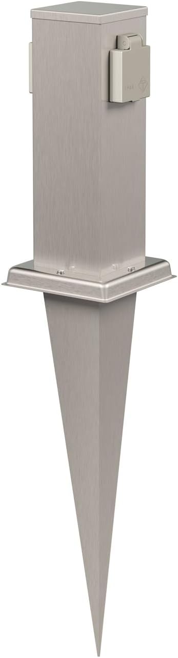 ledscom de garten steckdosen saule polly mit erdspiess fur aussen 2 fach edelstahl eckig 27cm amazon de baumarkt