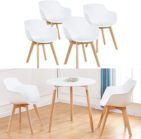 h j wedoo 4er set wohnzimmerstuhl esszimmerstuhl mit armlehne und buchenholz retro design stuhl fur buro lounge kuche wohnzimmer weiss amazon de kuche haushalt wohnen