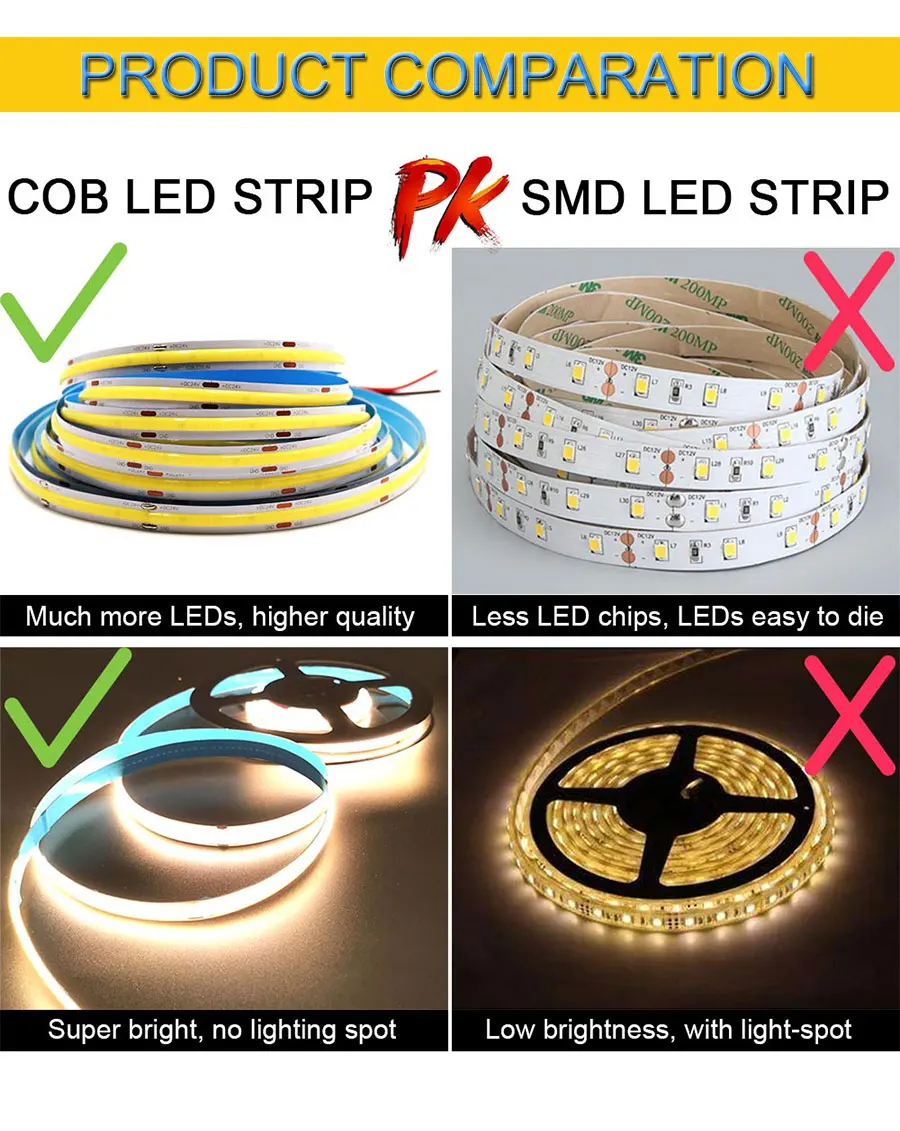 384 leds high density flexible fob led light bar ra90 warm nature cool white blue green red dc 12v 24v soft cob strip lighting led strips aliexpress