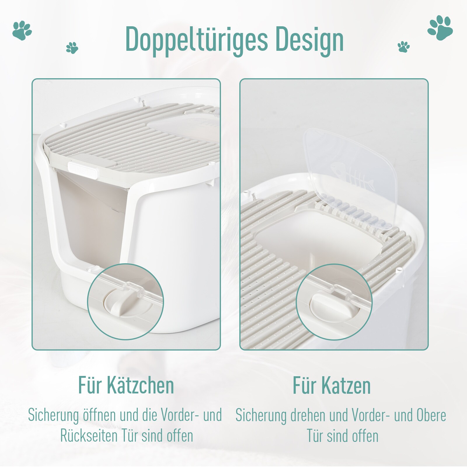 pawhut katzentoilette mit tur weiss grau 55 5 x 44 5 x 38 3 cm lxbxh katzenklo katzenklo katzentoilette mit schaufel online kaufen bei netto