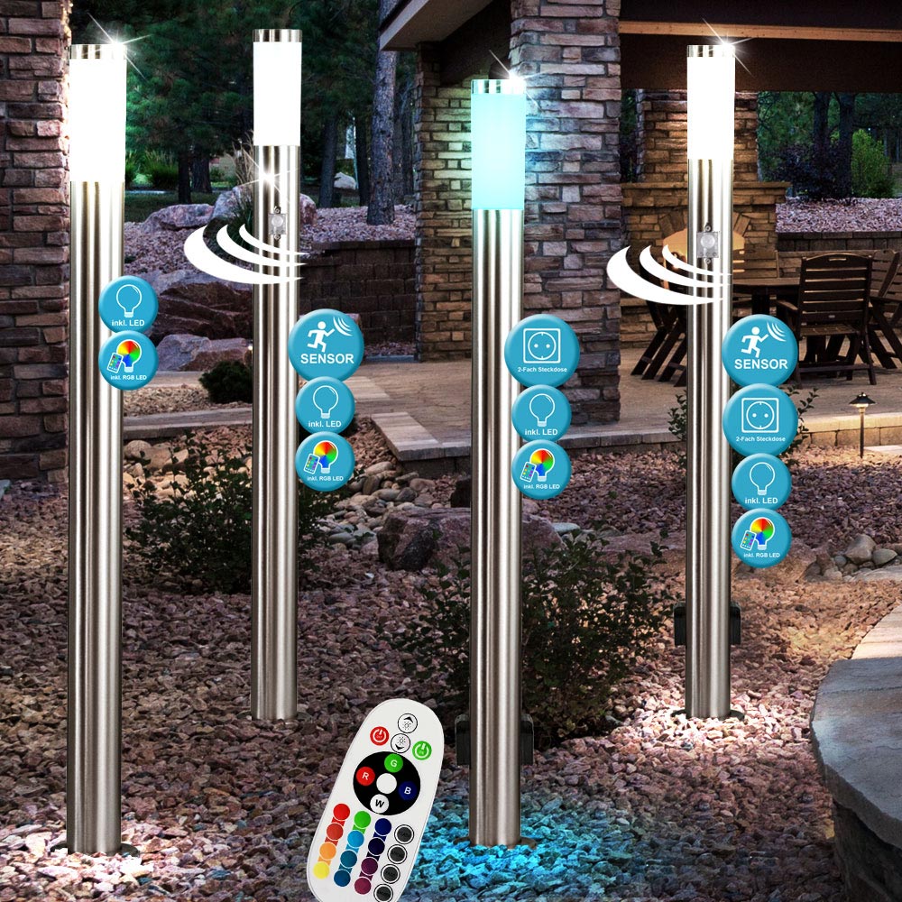 led aussen leuchte steckdosen energie verteiler strom saule edelstahl lampe grau ebay
