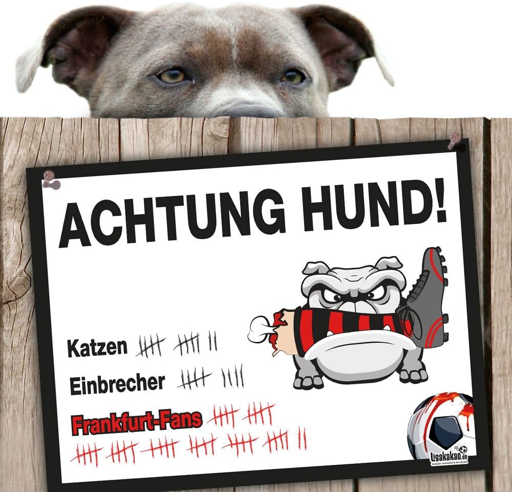 hunde warnschild schutz vor frankfurt fans tsg hoffenheim mainz 05 alle fussball fans dieser revier markierer schutzt haus hof vor frankfurt fans achtung vorsicht hund bissig amazon de sport freizeit