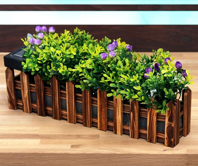 buri led solar flower box garden fence 36 cm with artificial plants garden decoration balcony box amazon de garden