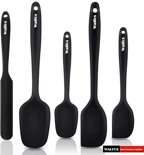 amazon de walfos pfannenwender aus bpa freiem und lebensmittelechtem silikon hitzebestandig antihaft pfannenwender zum kochen backen und mischen starke 4 mm edelstahl kerntechnologie 5 stuck