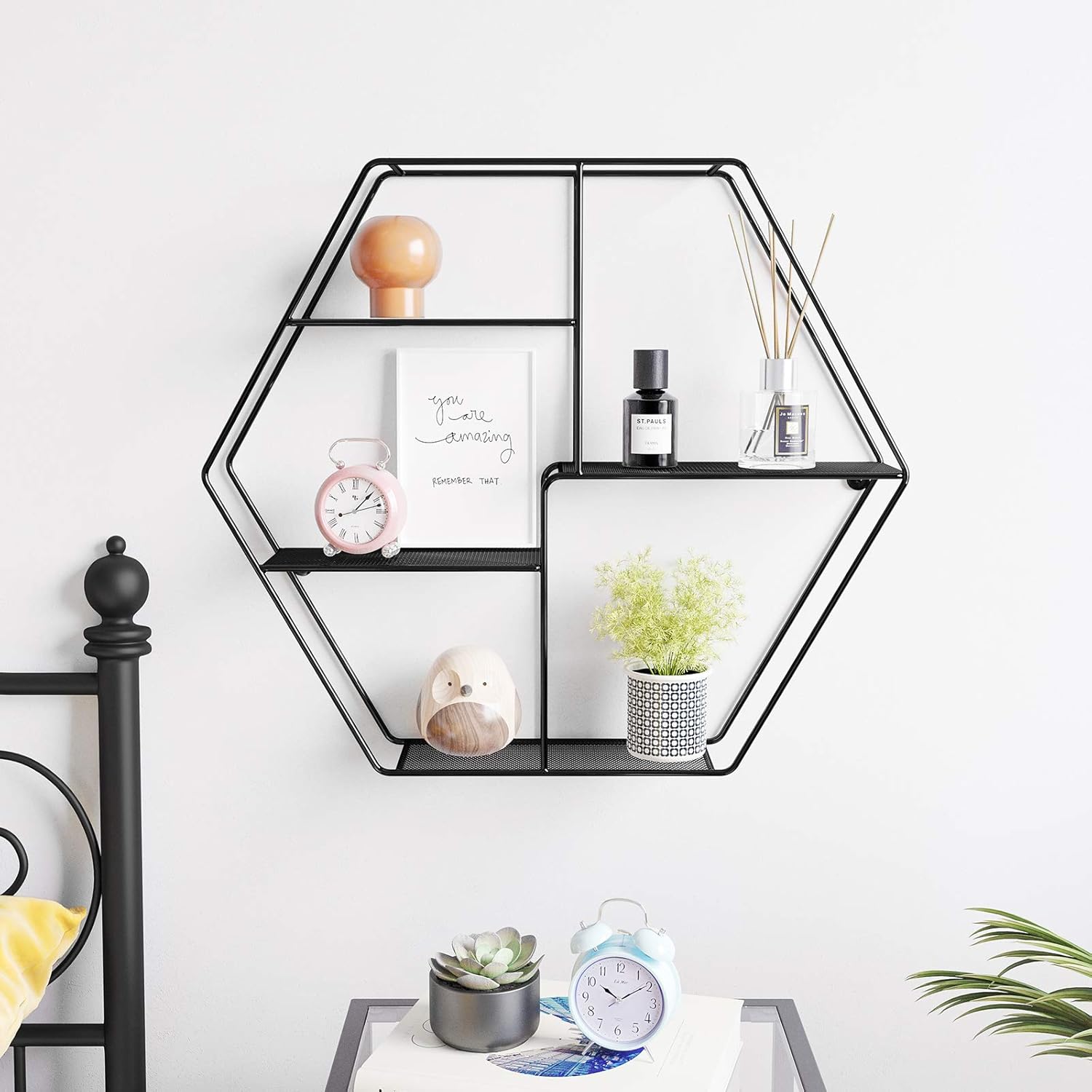 songmics wandregal schweberegal sechseckig mit 4 ablagen aus metall 60 5 x 12 x 53 cm mit 2 schrauben dekoratives rega wandregal regal dekorative regale