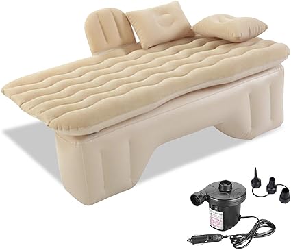 ergocar auto luftmatratze aufblasbare matratze mit pumpe air bett camping auto kissen fur reisen camping hinterhof strand beige amazon de sport freizeit