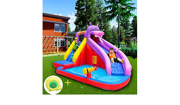 tmil kinder super hupfburg bouncer mit wasserrutsche und planschbecken hupfburg einschliesslich luftgeblase tragetasche reparatur kit fur garten spass 400 300 250cm amazon de spielzeug