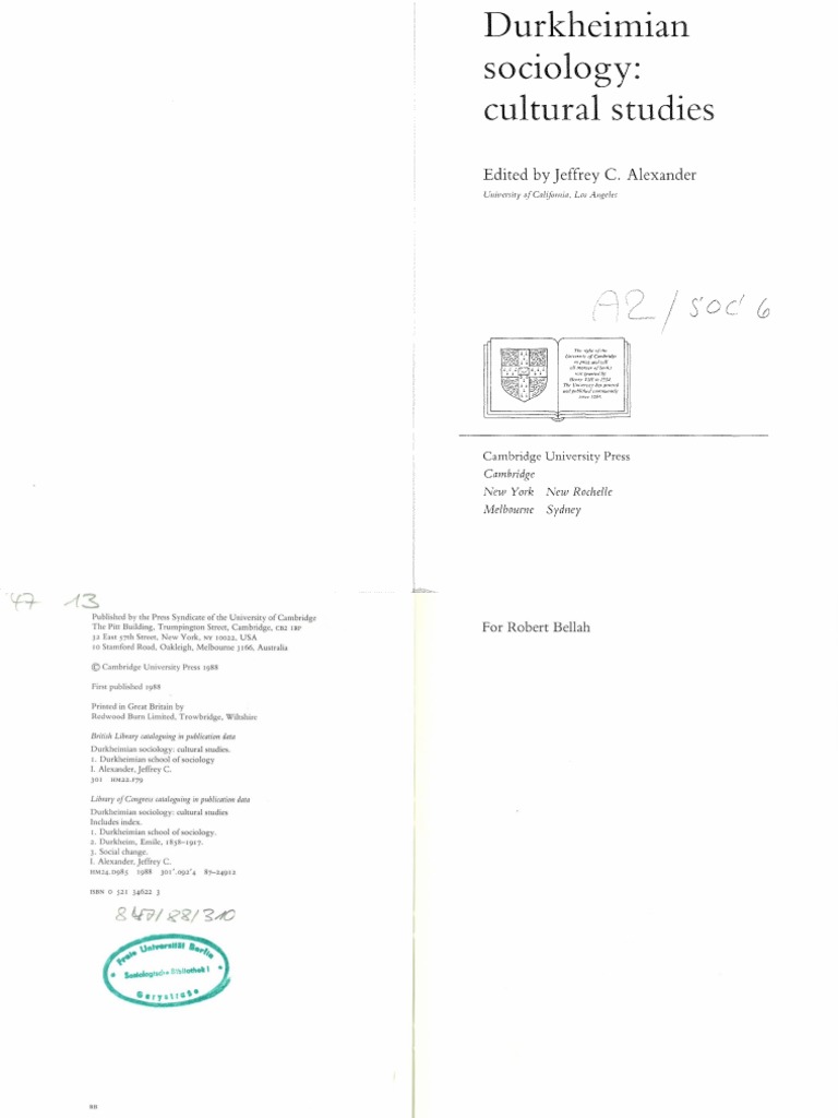 alexander j durkheimian sociology cultural studies cambridge university press 1988 emile durkheim sociology